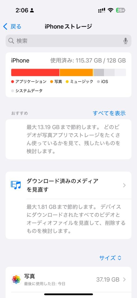 多くの人は、私と同様にアプリケーションと写真保存に容量の多くを割いているはずです。