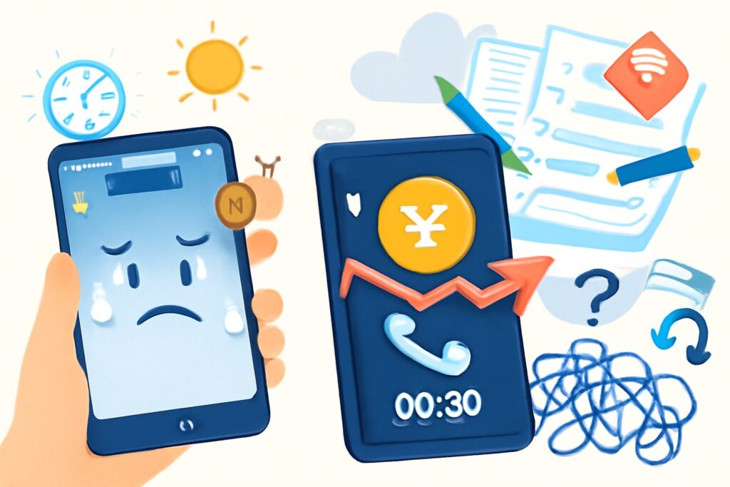 格安SIMへの乗り換えを検討する際、料金の安さは魅力的ですが、通信速度や使い勝手で失敗したくないですよね。私も楽天モバイル黎明期に乗り換えをして、回線速度が遅すぎるために、すぐにソフトバンクに戻した経験があります。