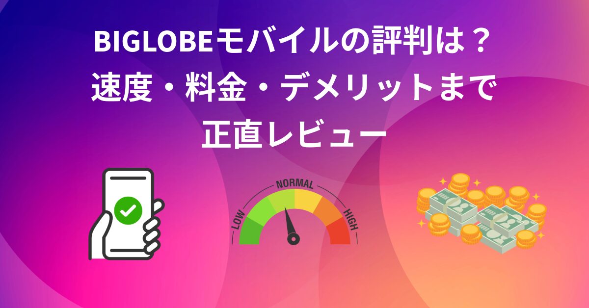 本記事では、BIGLOBEモバイルの評判や実際の使用感をベースに、実際の速度(実測値)や料金プラン、契約前に知っておくべきメリット・デメリットを徹底レビューします。